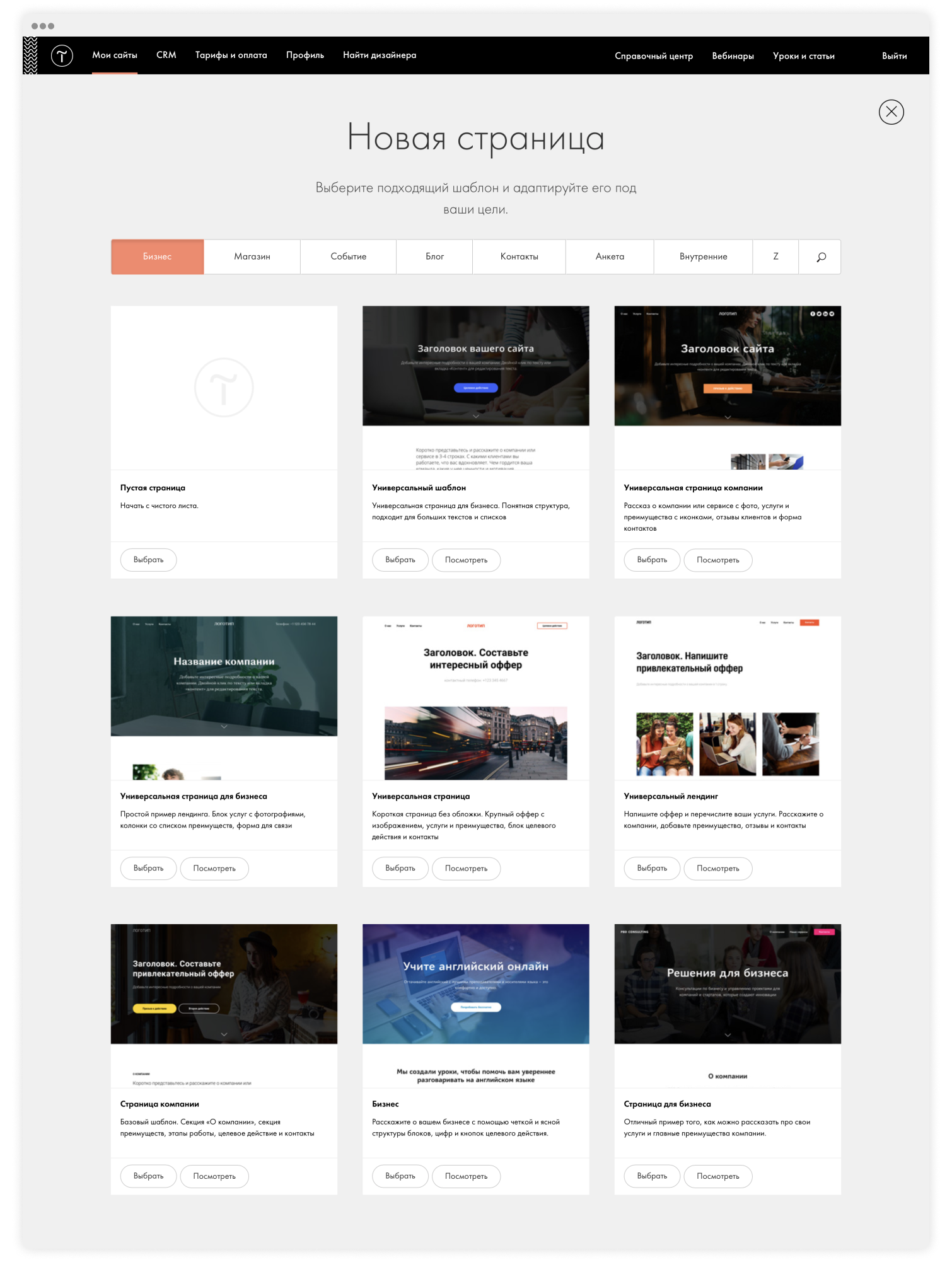 Плитка готовых шаблонов сайтов c логотипом Тильды