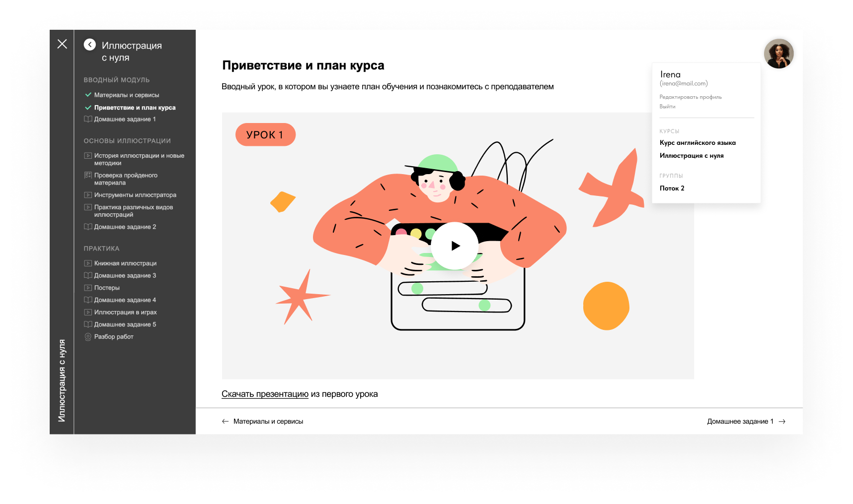 Личный кабинет курсов и интернет-магазина связаны — вся информация: курсы, доступы к группам и заказы будут доступны в одном профиле.