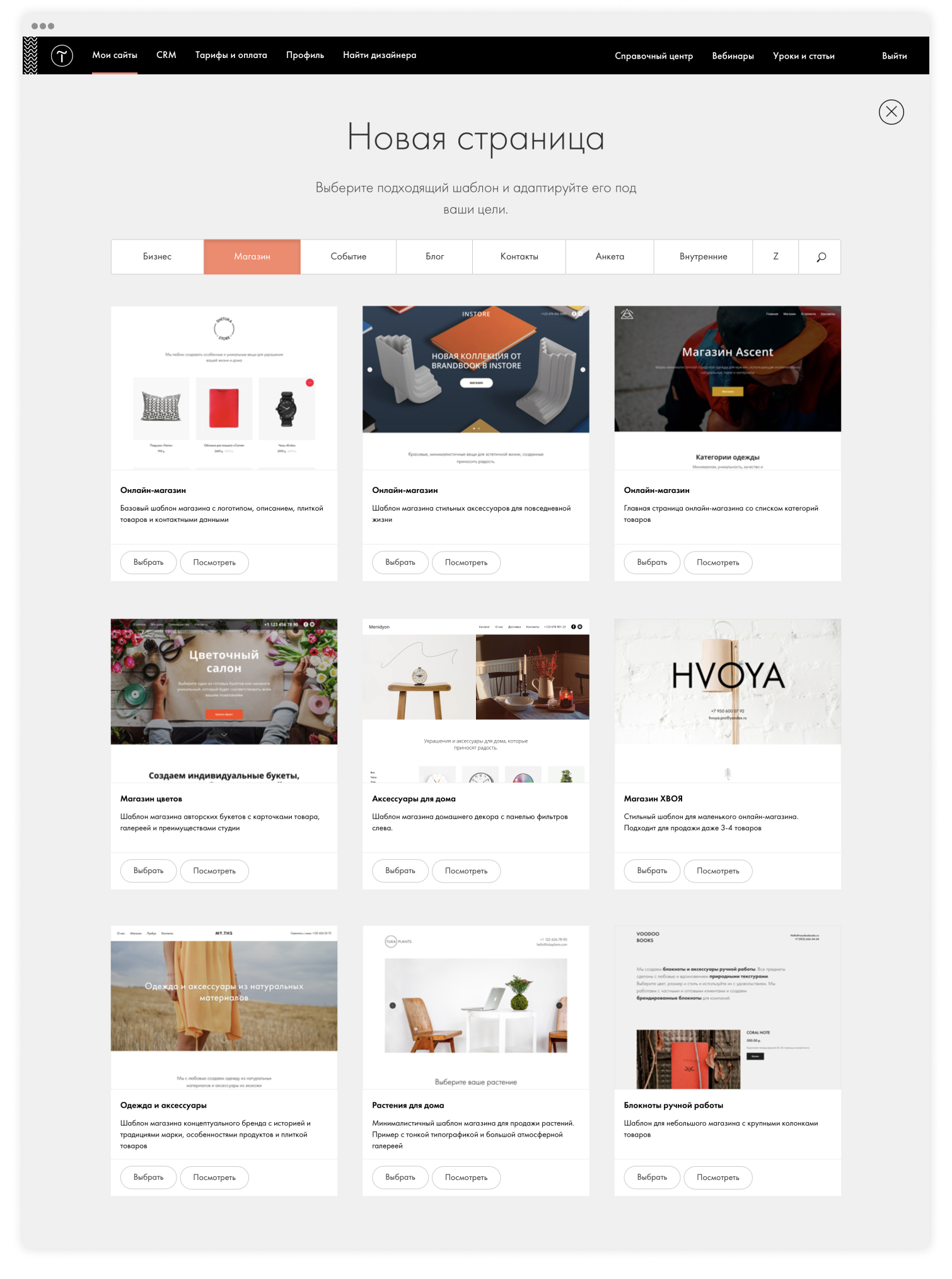 Плитка готовых шаблонов сайтов c логотипом Тильды